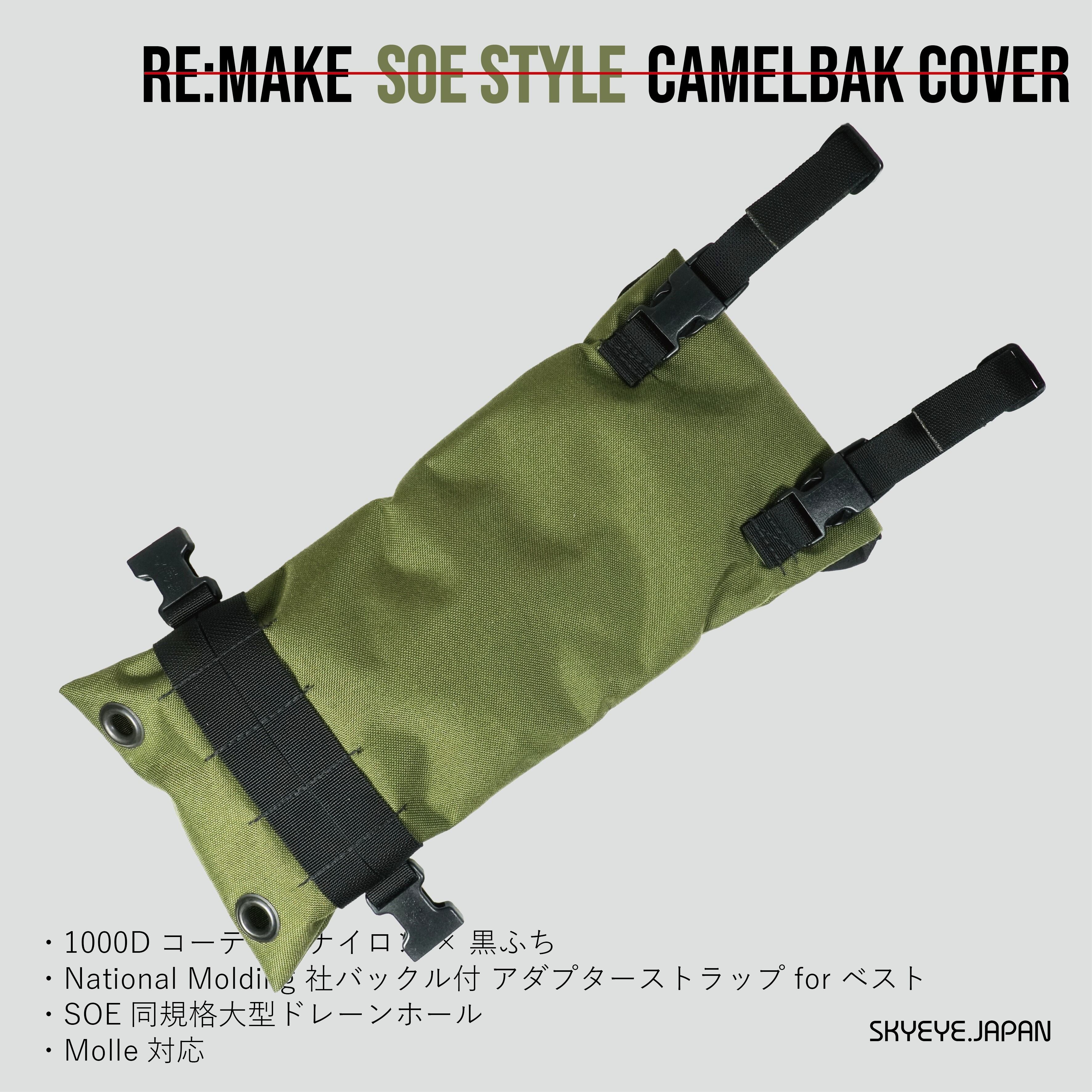 実物から型紙を丁寧に起こし、当時のSOEキャメルバックカバーを人気のODカラーと黒ふちで再現(製造ロットにより複数色あるODの中から最も黒との組み合わせが映える色を採用)。